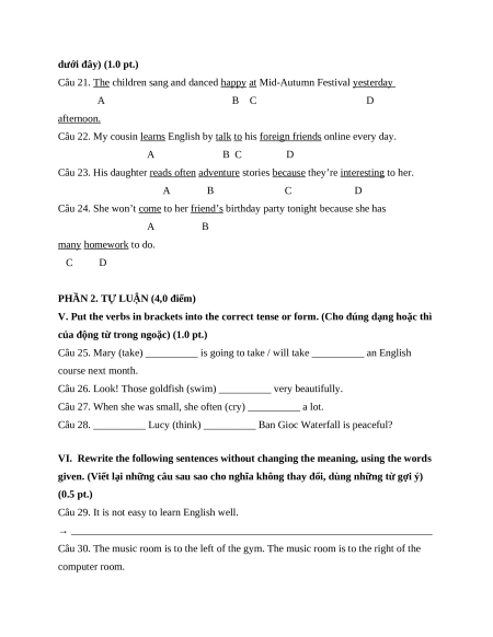 Câu 21. The children sang and danced happy at Mid-Autumn Festival yesterday A B C D afternoon.
