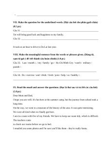 IX. Read the email and answer the questions. (Đọc lá thư sau và trả lời các câu hỏi) (1.0 pt.) Dear Mum and Dad,