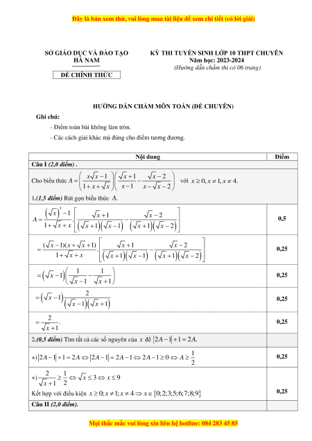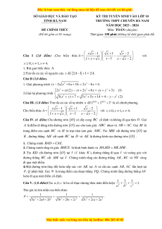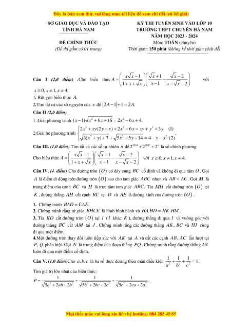 KỲ THI TUYỂN SINH LỚP 10 THPT CHUYÊN HÀ NAM Năm học: 2023-2024