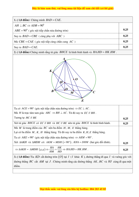 BC tại D và AE là đường kính của đường tròn (O) . A K O H D B M C E