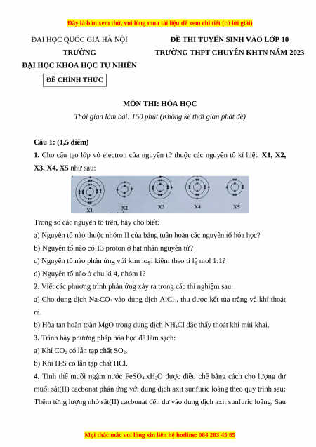 Đề thi vào 10 môn Hóa học năm 2023 Đại học Quốc Gia Hà Nội