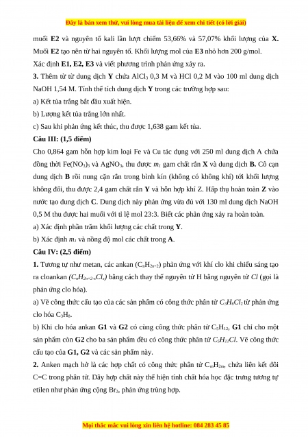 c) Sau khi phản ứng kết thúc, thu được 1,638 gam kết tủa. Câu III: (1,5 điểm)
