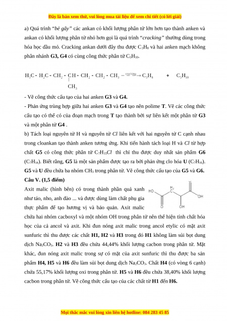 G5 và U đều chứa ba nhóm CH3 trong phân tử. Vẽ công thức cấu tạo của G5 và G6. Câu V. (1,5 điểm)