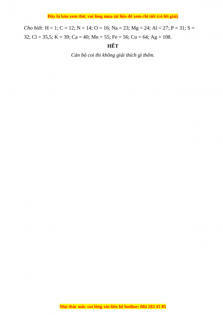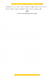 Cho biết: H = 1; C = 12; N = 14; O = 16; Na = 23; Mg = 24; Al = 27; P = 31; S =