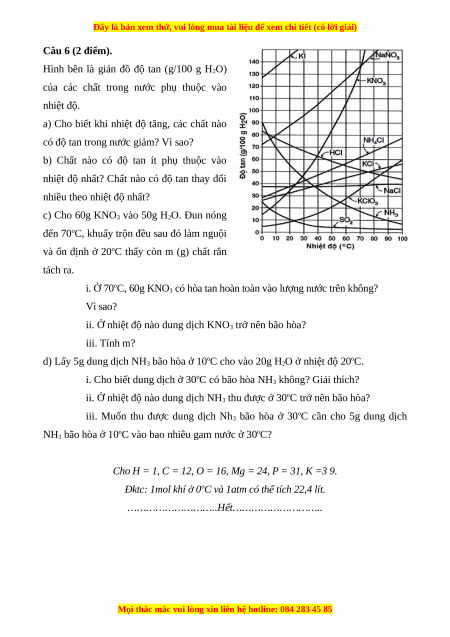Hình bên là giản đồ độ tan (g/100 g H2O)