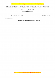(Cho biết: C = 12, H = 1, O = 16, Ba = 137, Cl = 35,5, Fe = 56, Al = 27, Na = 23,