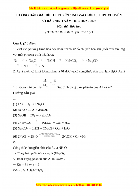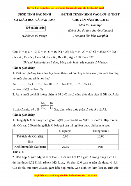 Đề thi vào 10 môn Hóa học năm 2023 - Trường THPT Chuyên Bắc Ninh