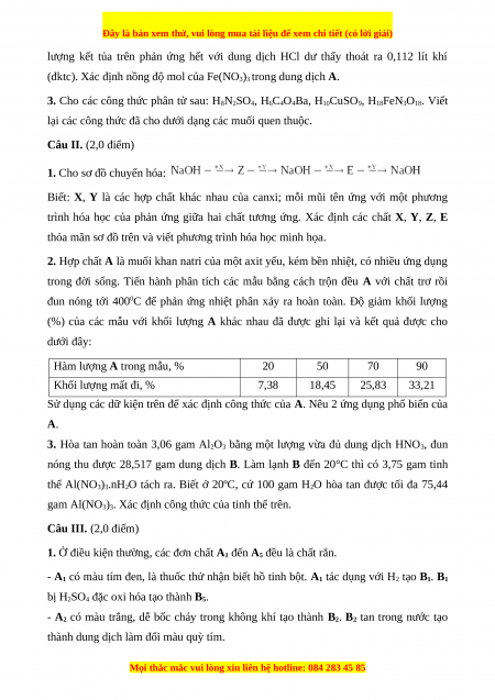 gam Al(NO3)3. Xác định công thức của tinh thể trên. Câu III. (2,0 điểm)