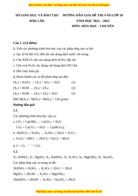 Đề thi vào 10 môn Hóa học năm 2023 - Trường THPT Chuyên Đắk Lắk
