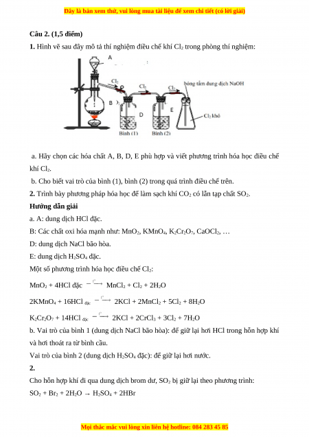 1. Hình vẽ sau đây mô tả thí nghiệm điều chế khí Cl2 trong phòng thí nghiệm: B E D