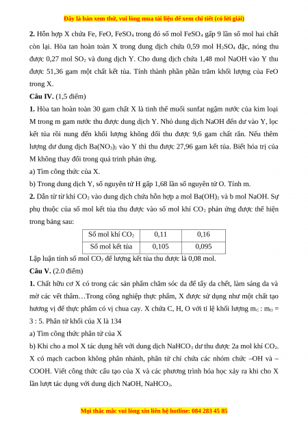 được 51,36 gam một chất kết tủa. Tính thành phần phần trăm khối lượng của FeO trong X. Câu IV. (1,5 điểm)