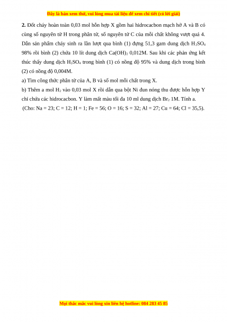 2. Đốt cháy hoàn toàn 0,03 mol hỗn hợp X gồm hai hidrocacbon mạch hở A và B có