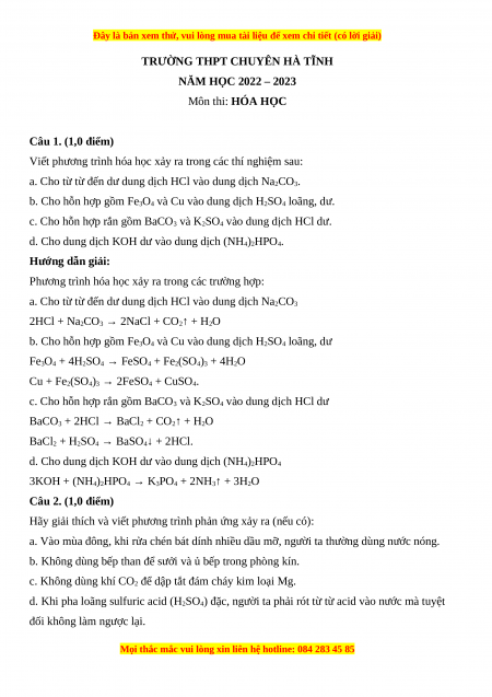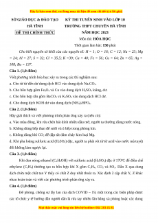 Đề thi vào 10 môn Hóa học năm 2023 - Trường THPT Chuyên Hà Tĩnh