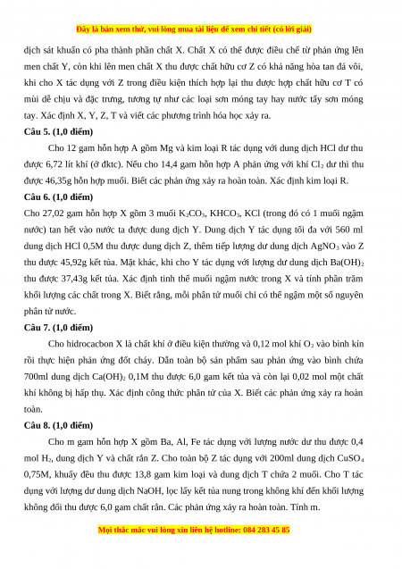 khối lượng các chất trong X. Biết rằng, mỗi phân tử muối chỉ có thể ngậm một số nguyên phân tử nước. Câu 7. (1,0 điểm)