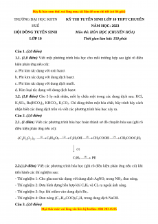 Môn thi: HÓA HỌC (CHUYÊN HÓA) LỚP 10