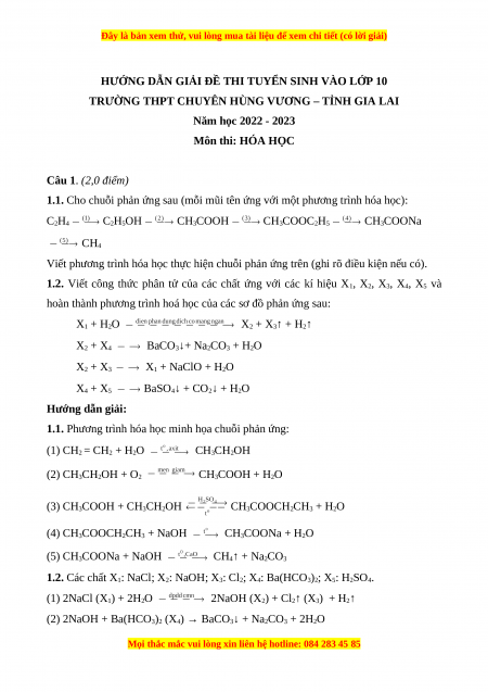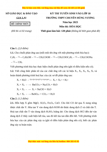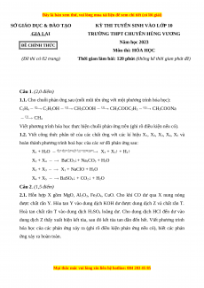 Đề thi vào 10 môn Hóa học năm 2023 - Trường THPT Chuyên Hùng Vương