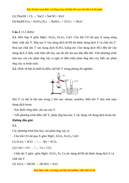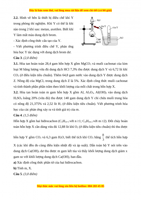 2.2. Hình vẽ bên là thiết bị điều chế khí Y