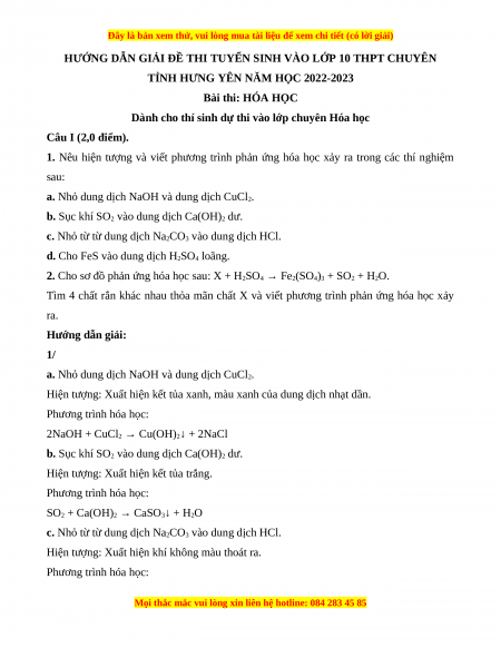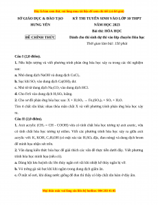 TỈNH HƯNG YÊN NĂM HỌC 2022-2023 Bài thi: HÓA HỌC