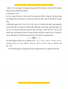 Thí sinh không được sử dụng tài liệu kể cả bảng tuần hoàn các nguyên tố hóa học.