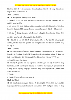Lưu ý: Học sinh được dùng Bảng tuần hoàn các nguyên tố hóa học.