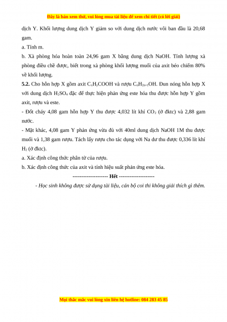 5.2. Cho hỗn hợp X gồm axit CxHyCOOH và rượu CnH2n+1OH. Đun nóng hỗn hợp X