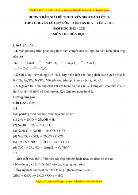 Đề thi vào 10 môn Hóa học năm 2023 - Trường THPT Chuyên Vũng Tàu