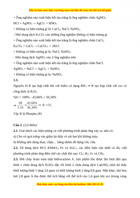 1.2. Chỉ dùng thêm dung dịch HCl, hãy phân biệt các dung dịch sau: CaCl2; NaCl;