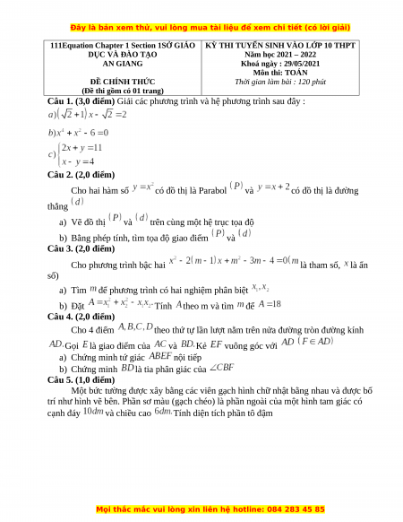 Đề thi vào 10 môn Toán tỉnh An Giang năm 2022