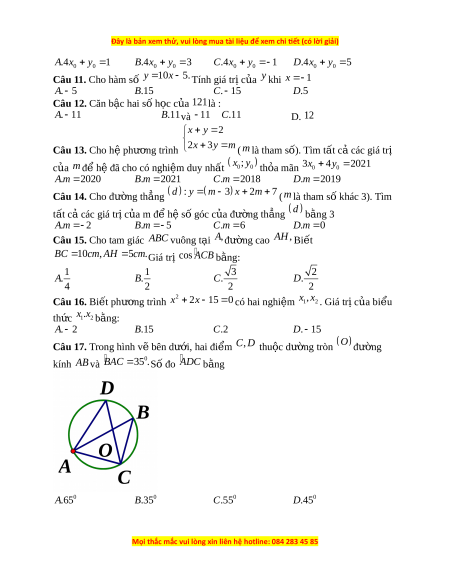 Đây là bản xem thử, vui lòng mua tài liệu để xem chi ết (có lời giải)