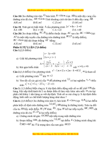 nh BC(T là ti p đi ế m ể ), BC 6 c . m Độ dài đo n t ạ h ng ẳ AT b ng: ằ . A 3 cm . B 6 cm C.5 cm . D 4 cm Phần II.TỰ LU N Ậ (7,0 đi m ể ) Câu 1.(2,0 đi m ể ) x 3y 10 a) Gi i ả h ph ệ ư ng t ơ