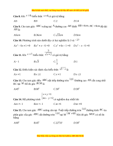 Câu 9. Cho tam giác ABC vuông t i ạ , A đư ng ờ cao AH.Bi t ế HB 4 c , m HC 9 cm đ dài ộ AH là: .6 A cm .3 B 6cm C. 13cm .9 D cm Câu 10. Phư ng ơ trình nào dư i ớ đây có hai nghi m ệ là 3 và 2? 2 2 2 2 .