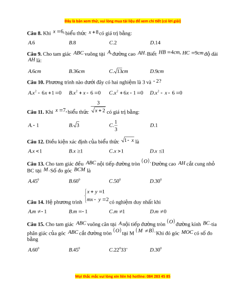 Đây là bản xem thử, vui lòng mua tài liệu để xem chi ết (có lời giải)