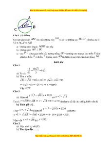 ứ minh AO là đư ng t ờ rung tr c ự c a ủ đo n t ạ h ng ẳ PG ĐÁP ÁN Câu 1. 18 18 3 6 3 a) Ta có: 3 3 b) Tìm x bi t ế : 4x 9x 15 x 0