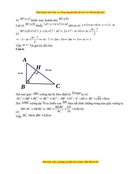 AC AB BC BC AC AB 1 0 6 6 4 BC 64 8 cm Xét AB C vuông t i ạ B có chi u cao ề BH , theo hệ th c l ứ ư ng t ợ rong tam giác vuông ta A . B BC 6.8