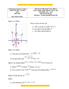 Câu 2. (1,0 đi m ể ) a) Tính giá tr c ị a ủ bi u ể th c : ứ A 9.32 2 x 5 B b) Rút g n bi ọ u t ể h c ứ x 5 v i ớ x 0 Câu 3. Cho đư ng t ờ h ng
