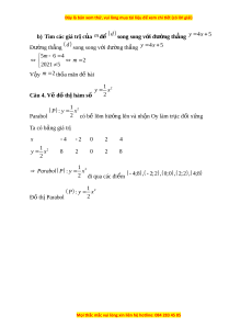 ể d song song v i ớ đư ng t ờ h ng ẳ y 4 x 5 Đư ng ờ th ng ẳ d song song v i ớ đư ng t ờ h ng ẳ y 4 x 5 5 m 6 4 m 2 2021 5 V y ậ m 2 th a m ỏ ãn đ bài ề 1 2 y x Câu 4. V đ ẽ t ồ h hà ị m s ố 2 1 P 2 : y x Parabol 2 có bề lõm hư ng ớ lên và nh n ậ Oy làm tr c ụ đ i ố x ng ứ Ta có b ng ả giá tr ị x 4 2 0 2 4 1 2 y x 8 2 0 2 8 2 1
