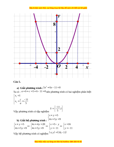 Câu 4. Vẽ đồ th hàm ị s ố 2 Câu 5. a) Gi i ả phư ng t ơ rình 2