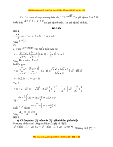 x 6 x 7 2 V y ậ S 7 2) a) Thay x 4 (tmdk) vào bi u ể th c ứ A ta có: 4 2 2 4 2 4 2 A . 4 1 .3 2 4 1 4 1 3 1 V y ậ khi x 4 A 2 b) Rút g n: ọ 2 x x 1 2