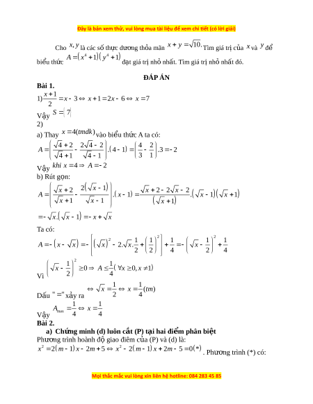 Đây là bản xem thử, vui lòng mua tài liệu để xem chi ết (có lời giải)