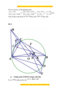 C nằm giữa M và . D G i ọ H là trung đi m ể c a ủ đo n ạ th ng ẳ CD a) Ch ng ứ minh t ứ giác AOHM n i ộ ti p ế trong m t ộ đư ng ờ tròn b) K
