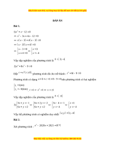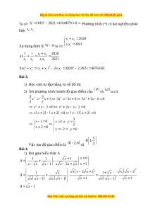 Ta có: 2 ' 1 010 2021 1 018079 0 Phư ng ơ trình (*) có hai nghi m ệ phân biệt x , x 1 2 . x x 2020 1 2 Áp d ng ụ đ nh l ị