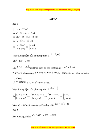 Đây là bản xem thử, vui lòng mua tài liệu để xem chi ết (có lời giải)