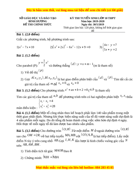 ệ xem ể chi ti t ế (có l i ờ gi i ả ) SỞ GIÁO D C Ụ VÀ ĐÀO T O Ạ KỲ THI TUY N Ể SINH L P Ớ 10 THPT BÌNH DƯ N Ơ G Năm h c ọ 2019-2020 Đ Ề THI CHÍNH TH C Ứ Ngày thi: 30/5/2019 Th i