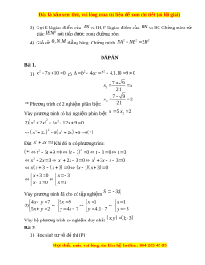 ử O, N, M th ng ẳ hàng. Ch ng m ứ inh 2 2 2 NA NB 2 R ĐÁP ÁN Bài 1. 1) 2 x 7x 10 0 có 2 2 b 4ac 7 4.1.10 9 0 7 9 x 5 1 2.1 7 9 x 2 2 Phư ng ơ trình có 2 nghi m ệ phân bi t ệ : 2.1 V y ậ phư ng t ơ rình có hai nghi m ệ phân bi t ệ x 5 ; x 2 1 2