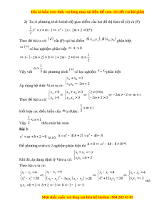 x x a 1 2 Khi đó, áp d ng ụ đ nh l ị ý Viet ta có: x x b 2 1 2 Theo bài ra ta có: x x 4 x x 4 x x 4 x x 4 1 2 1 2 1 2 1 2 3 3 x x 28 x x 3x x x x 2 8 4 12x x 28 x x 3 1 2 1 2 3 1 2 1 2 3 1 2 1 2 mà x x b