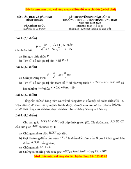 ệ xem ể chi ti t ế (có l i ờ gi i ả ) SỞ GIÁO D C Ụ VÀ ĐÀO T O Ạ KỲ THI TUY N Ể SINH VÀO L P Ớ 10 BÌNH THU N Ậ