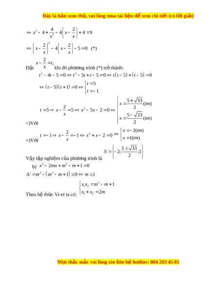 ệ xem ể chi ti t ế (có l i ờ gi i ả ) 4 2 2 x 4 4 x 4 9 2 x x 2 2 2 x 4 x 5 0 (*) x x 2 x t , Đ t ặ x khi đó phư ng t ơ rình (*) tr t ở hành: 2 2 t 4t 5 0