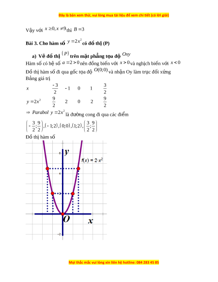 Bài 3. Cho hàm số y 2 x có đ t ồ h ( ị P) a) V đ ẽ ồ th