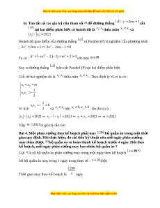 x có đồ thị P a) Vẽ đồ th ị P trên m t ặ ph ng t ẳ a ọ đ ộ Oxy b) Tìm t t ấ cả các giá tr c ị a t ủ ham s ố m đ đ ể ư ng ờ th ng ẳ d : y 2 mx 1c t ắ P t i ạ hai đi m ể phân bi t ệ có hoành đ l ộ à x ; x x x x x 2 021 1 2 th a ỏ mãn 1 2 và 2 1 Bài 4.(1,0 đi m ể ) M t ộ phân xư ng ở theo k ho ế ch ph ạ i ả may 1200 b qu ộ ần áo trong m t ộ th i ờ gian quy đ nh. K ị hi th c ự hi n, do c ệ i ả ti n k ế t ỹ hu t ậ nên m i ỗ ngày phân xư ng ở may thêm đư c ợ 10 b qu ộ