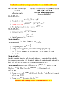 Môn thi: Toán (không chuyên) Đ C Ề HÍNH TH C Ứ Ngày thi: 08/06/2019 Câu 1. (2,0 đi m ể )